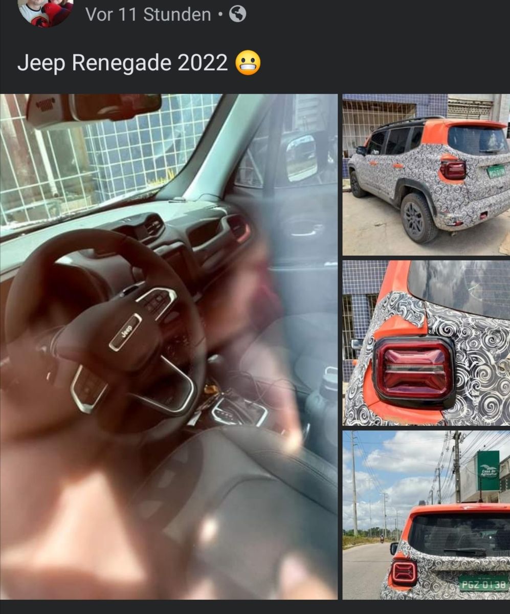 Wow, daswas da abgelichtet wurde, ist kein getunter Renegade, das ist ein Erlkönig. Außen die Swirl-Beklebung, die bei Testwagen üblich ist, innen sieht man bereits das neue Jeep Lenkrad, das auch der Compass mit dem Facelift bekommen hat. Dazu gibts dann wohl noch neue LED Leuchten.