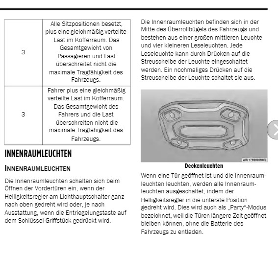 Irgendwie habe ich die Innenraumleuchten in meinem Wrangler verstellt. Jetzt scheinen die Deckenleuchten immer an zubleiben, auch während der Fahrt. Auch nach dem Studium der Bedienungsanleitung habe ich nur verstanden, dass das mit dem Helligkeitsregler zusammen hängt. Vielleicht hat hier Jemand ein besseres Verständnis oder Erfahrungen, die mir weiterhelfen...