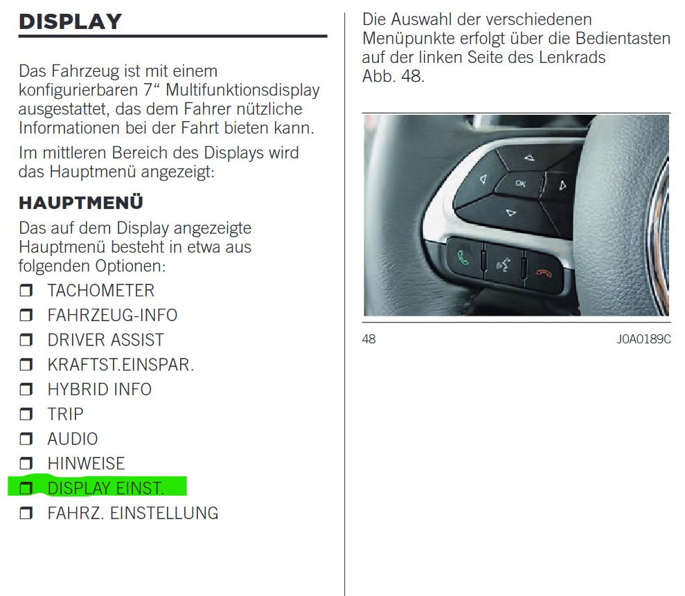 Im zentralen 7" Display gibt es drei Felder, die mit "oben links", "oben mitte" und "oben rechts" bezeichnet sind. Jedes dieser drei Felder lässt sich mit einem Wert belegen, die aus einer Liste in den Display-Einstellungen ausgewählt werden können. In dieser Liste befindet sich u. a. neben Datum, Uhrzeit, Batterie, etc. auch die Außentemperatur.