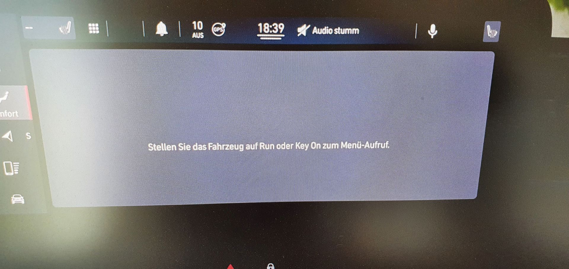 "Stellen Sie das Fahrzeug auf Run oder Key On zum Menü-Aufruf" (siehe Anhang)