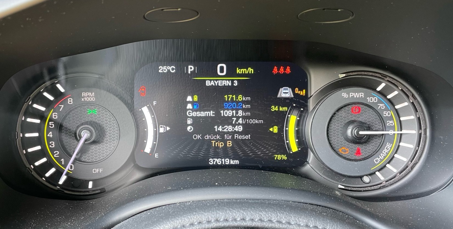 2024-11-08 getankt 23.78 l gesamt 293.2 km 185.9 km mit Benzin und 107.3 Elek. gefahren. Verbrauch laut Bordcomputer 7.6 l/100km alles e-save mit 100% akku gestartet, jetzt 14% akku.