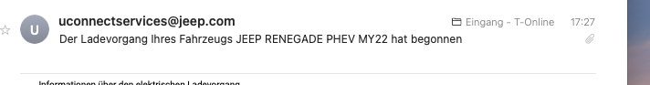 Fahre ich z.B. jetzt zur Ladesäule ums Eck --> keine Meldungen via eMail oder Statusanzeige verfügbar.