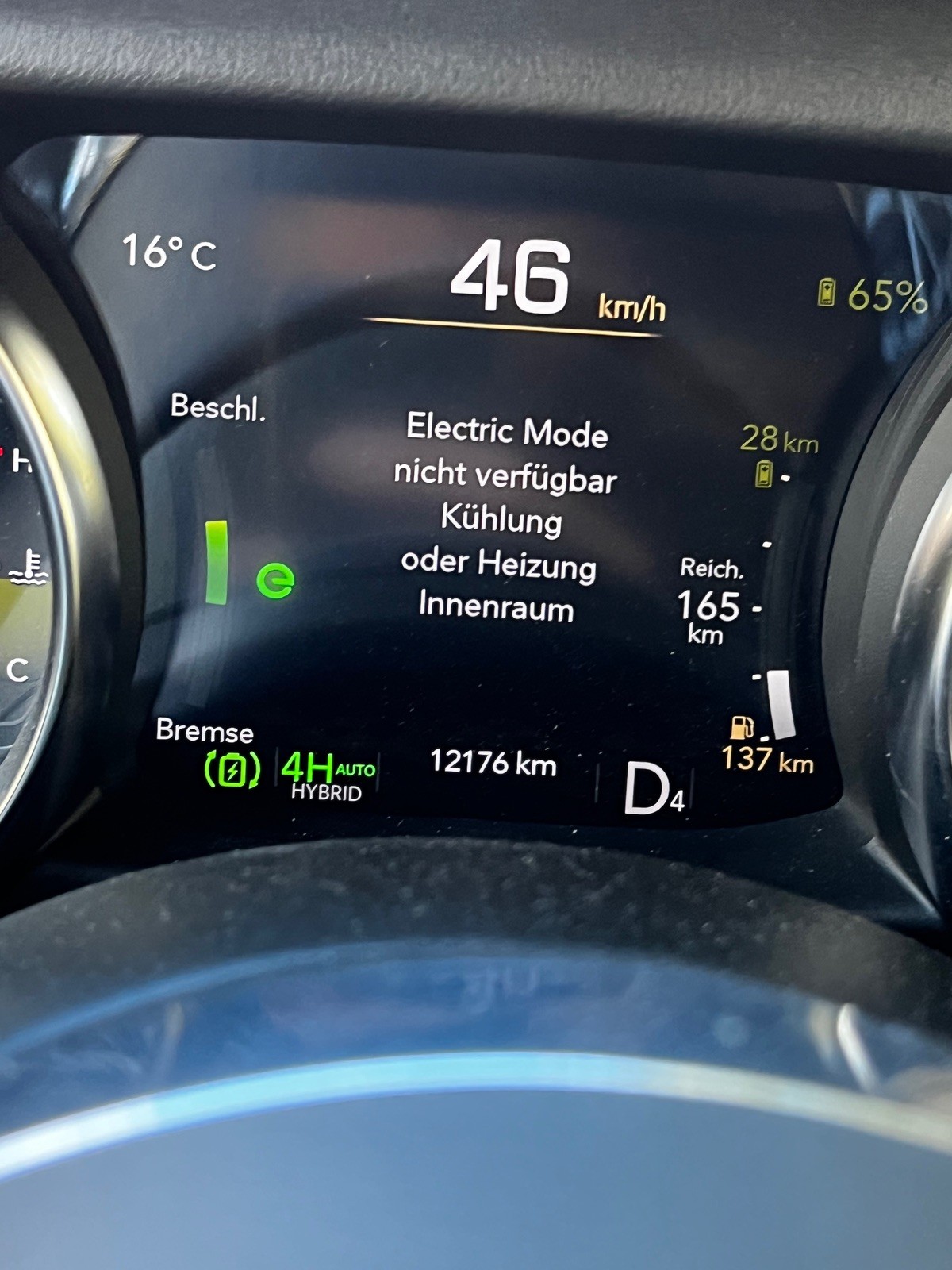 Habt ihr auch Veränderung bemerkt? Mein Jeep zeigte heute bei 13 Grad Außentemperatur diese Meldung an und verweigerte den elektrischen Antrieb.