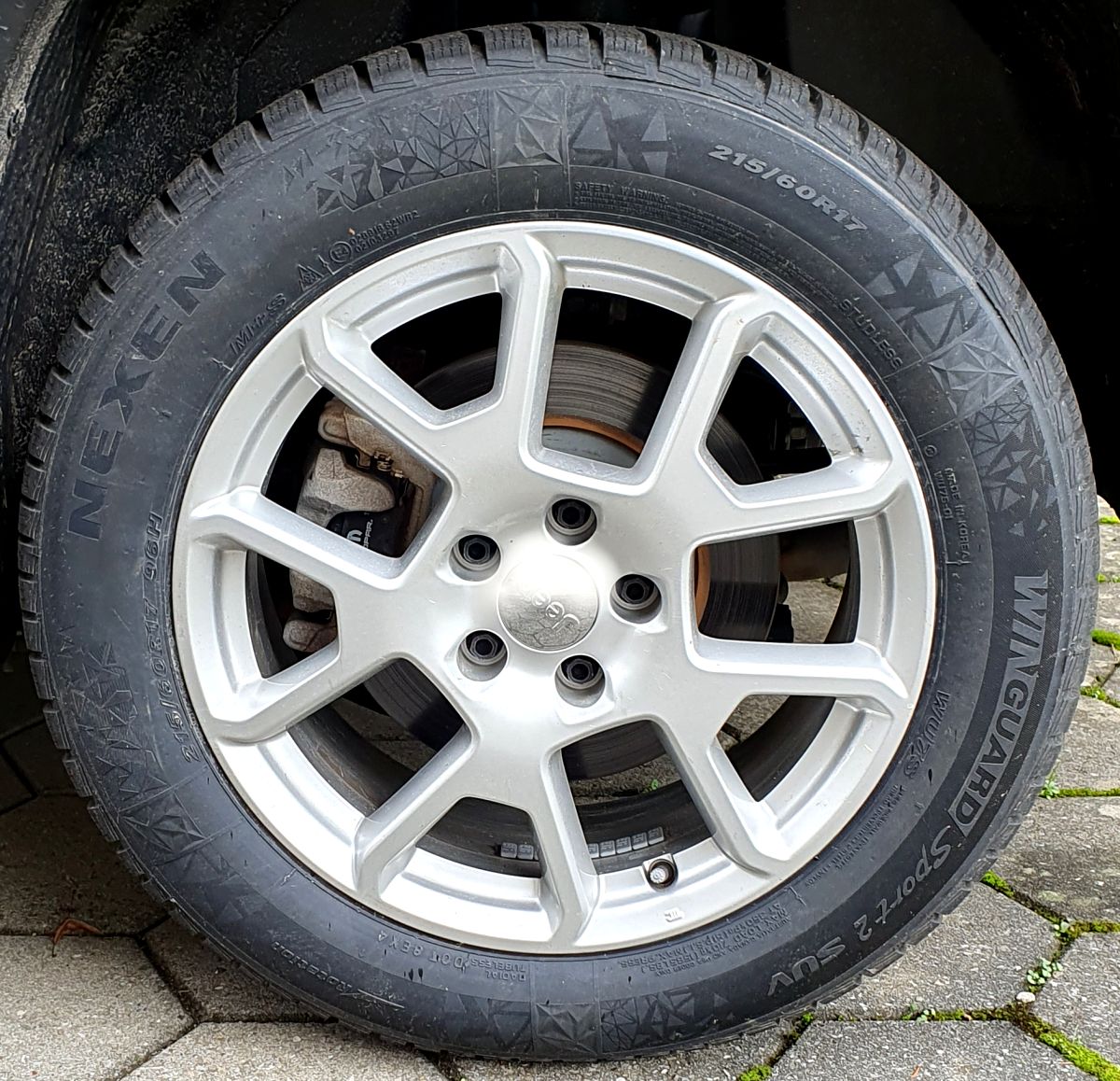 • Ich fahre den Bridgestone Blizzak LM005 in der Größe 215/60/R17 auf einer RC34 Felge. Der Reifen ist sehr lauffruhig. Die Räder habe ich bei Reifen.com gekauft. Waren deutlich billiger als Räder von Jeep. Die Felge ist auch als wintertauglich eingestuft.
