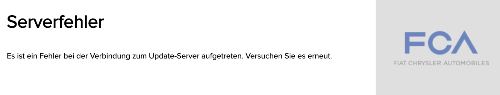 Nun starte ich die FCA-Toolbox stecke den Stick ein dann will dieser identifiziert werden allerdings kommt da nach kurzer Zeit ein Serverfehler "Es ist ein Fehler mit der Verbindung zum Update-Server aufgetreten. Nun dacht eich mir ich muss vll erstmal anmelden aber das geht dann ganz schief. Nun hoffe ich auf Eure Hilfe.