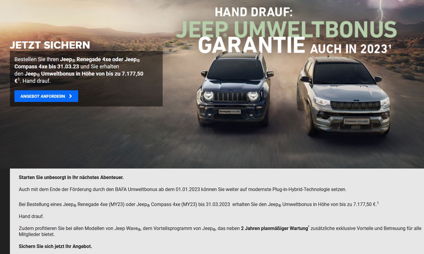 • Das kommt jetzt darauf an, wie schnell man bei Jeep realisiert, dass die Zeit des fette Beute machens durch die staatl. Förderung nun vorbei ist. Die Preise müssen wieder zurückgenommen werden, sonst wird es schwer in Deutschland noch einen Renegade oder Compass PHEV zu verkaufen, ich würde sogar soweit gehen und unmöglich sagen. Warten wir mal ab, was in Q2/2023 passiert.