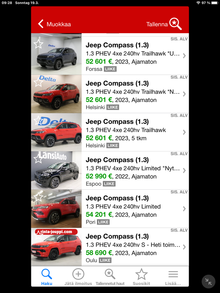 • Ich habe gerade ein Leasing-Angebot für einen neuen Compass Trailhawk auf dem Tisch liegen, völlig absurd was mir da angeboten wurde.