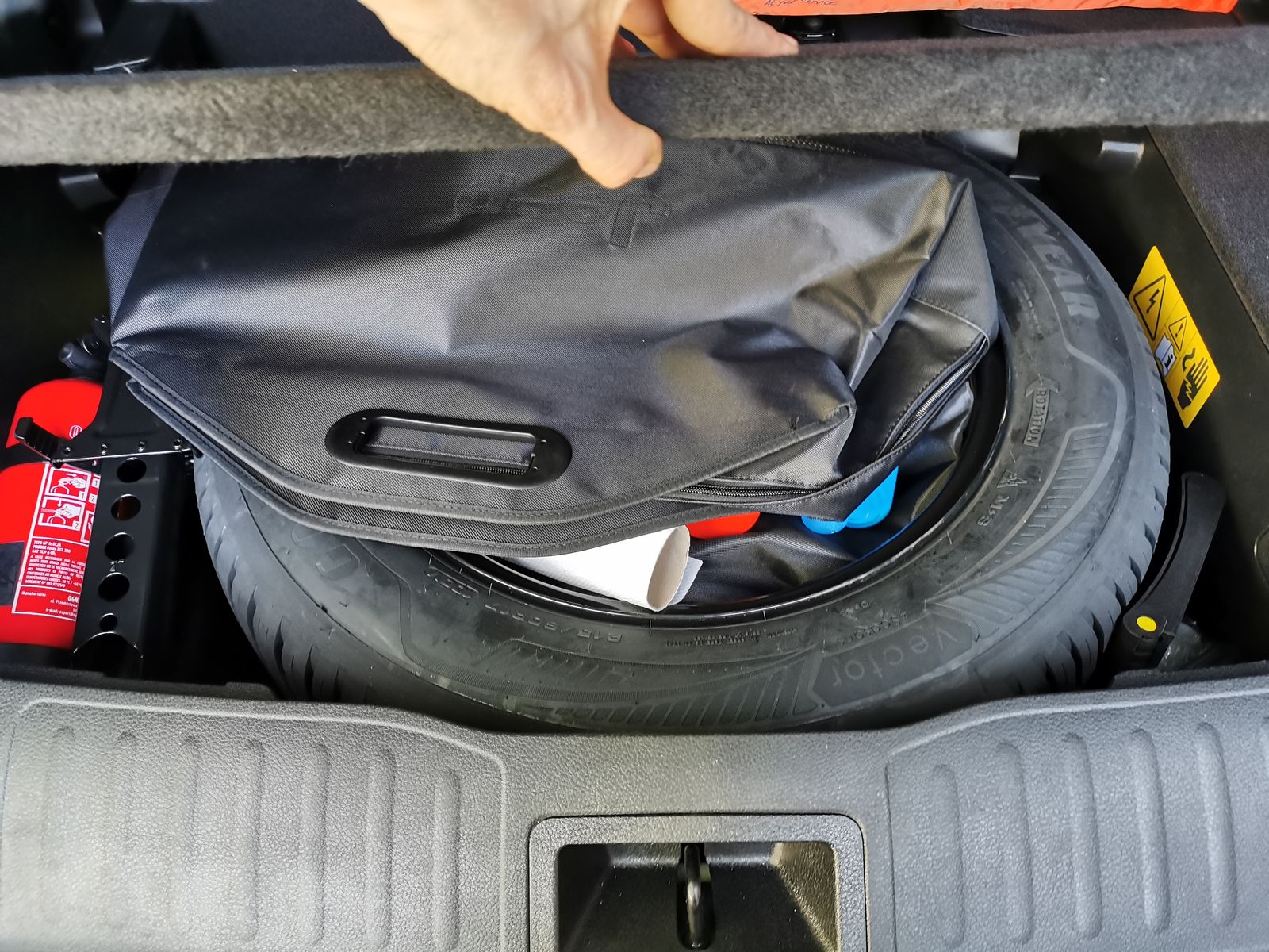 Mein Renegade Trailhawk hat statt ein Reserverad nur ein Styroporblock mit Pumpe und Dichtmittelkartusche.