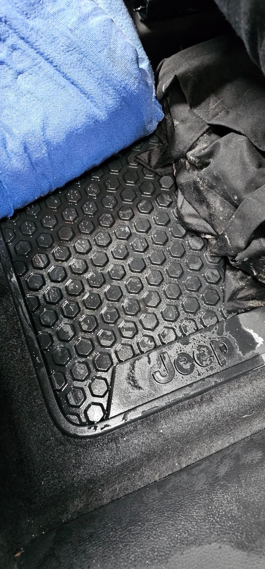 Jetzt ist es bei mir auch passiert, der ganze Fußraum klatschnass. Da ich beruflich viele Utensilien mitführe hab ich den hinteren und Beifahrer-Fußraum mit dicken Ikea- Decken ausgelegt, die waren wie ein Schwamm vollgesogen, ohne hätte das Wasser mind.1cm im Fußraum gestanden.